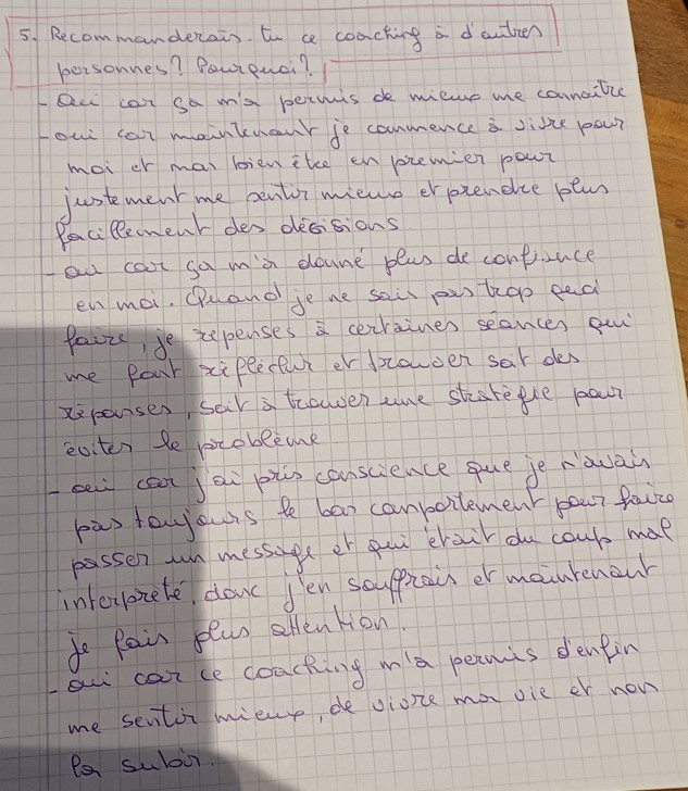 Sandra 02/02/2025 "Ce que j'ai apprécié de ce coaching c'est qu'il y avait un climat de confiance, j'osais dire ce que je pensais sans me sentir jugée"